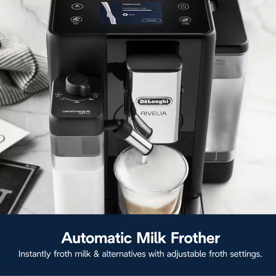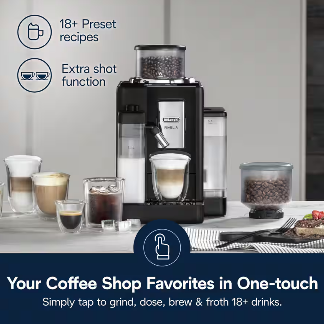 Rivelia-ს კომპაქტური, ჯილდოს მფლობელი დიზაინი საშუალებას გაძლევთ მარტივად შეცვალოთ თქვენი ყოველდღიური ყავის რუტინა და ერთი შეხებით მოამზადოთ კაფის სტილის სასმელები პერსონალიზაციით.